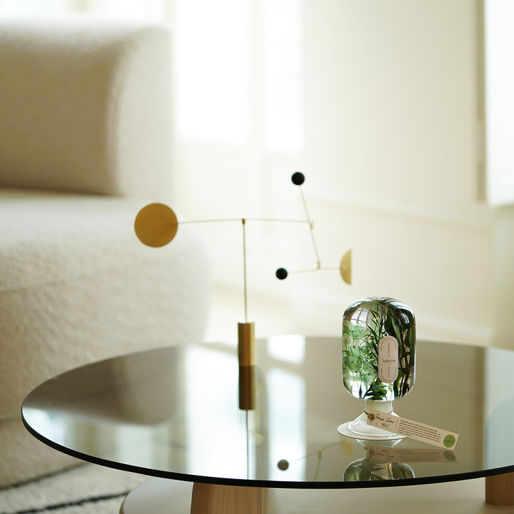 빛 투과율과 명도가 다른 세 가지 그린 소재를 조화롭게 엮어,