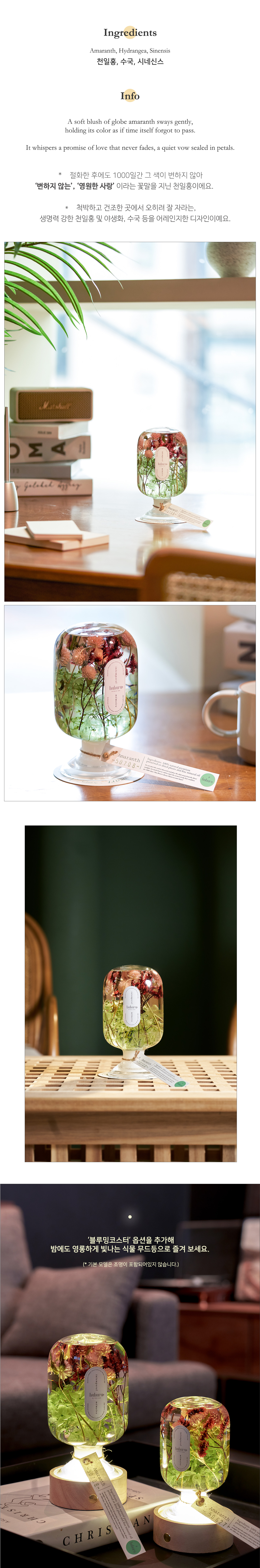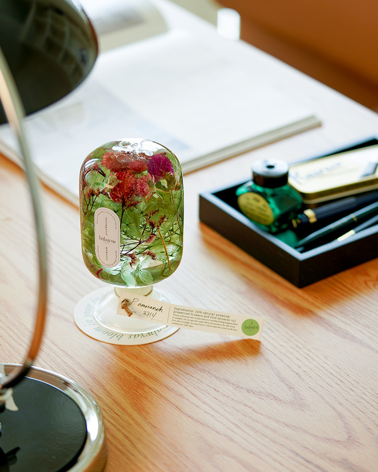 천일홍, 수국, 시네신스를 엮은, huhuru 오리지널 라인 중 하나인 천일홍입니다.