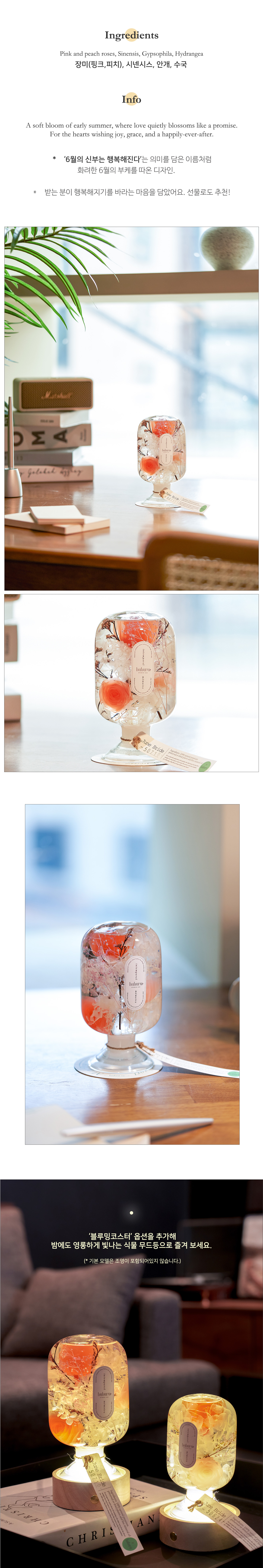 받는 분 모두가 행복해지기를 바라는 마음으로 6월의 핑크로즈 부케를 오브제 안에 엮었습니다.